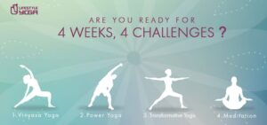 Are you up for an exciting body & mind challenge? Enjoy 4 weeks & 4 Challenges of a body, mind & heart transformative Yoga journey – Be part of our 4 weeks Yoga Challenge!